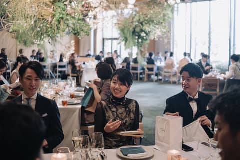 式のはじめから、参列者の皆さまが心から二人を祝福していることが伝わってきて、親としてこれ以上の喜びはありませんでした。一人ひとりに宛てた手紙や、その方に合わせた贈り物を用意していた点から、それぞれの方との強いつながりを感じました。新郎新婦がお一人お一人と会話を交わし、ただ座っている方が一人もいなかったことも嬉しく感じました。