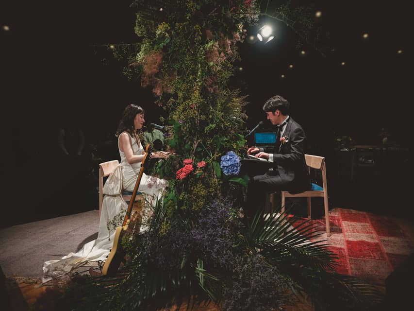 誓いの瞬間、ふたりの流れがひとつに重なり、