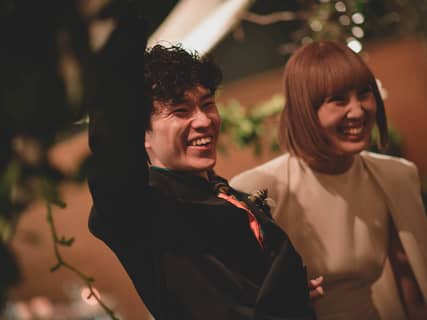 また、ゲストたちがシンプルにおめでとうや楽しかったと揃って言ってもらえたこともよかったです。従来の結婚式ではないからこそできた空間や音楽、自分たちが選んだクリエイターの方々と創り上げてきた式で、これだけの人達に祝ってもらうことや自分たちが主役の舞台に立つことは最初で最後だと思いますし、最高の時間を過ごすことができました。